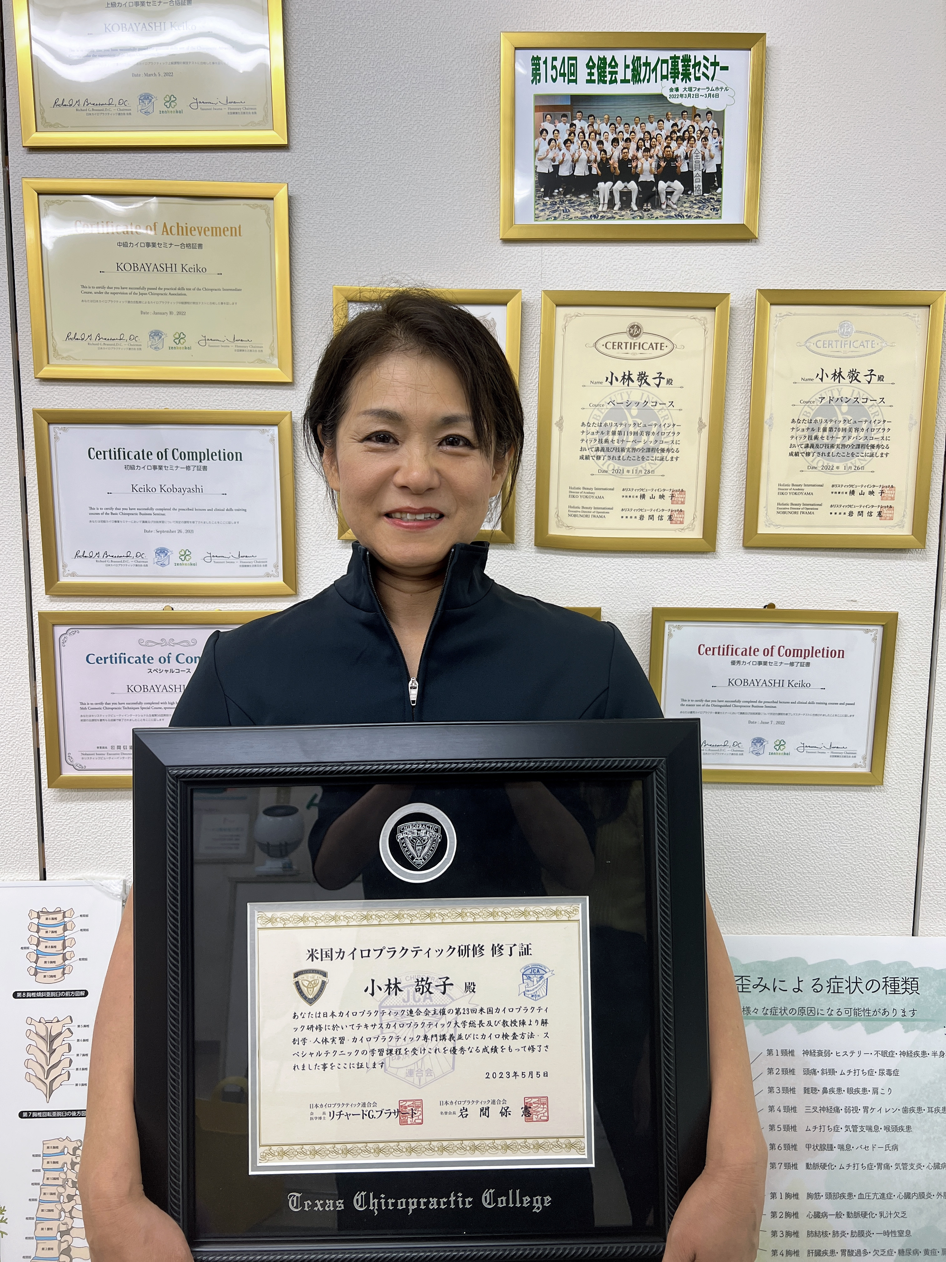 | 資格・所属団体 | 日本カイロプラクティック連合会、JCCE 日本カイロプラクティック教育諮問委員会<会員>、ACCP 米国カイロプラクティック医師学会<正会員>、日本エステティック協会<正会員> |